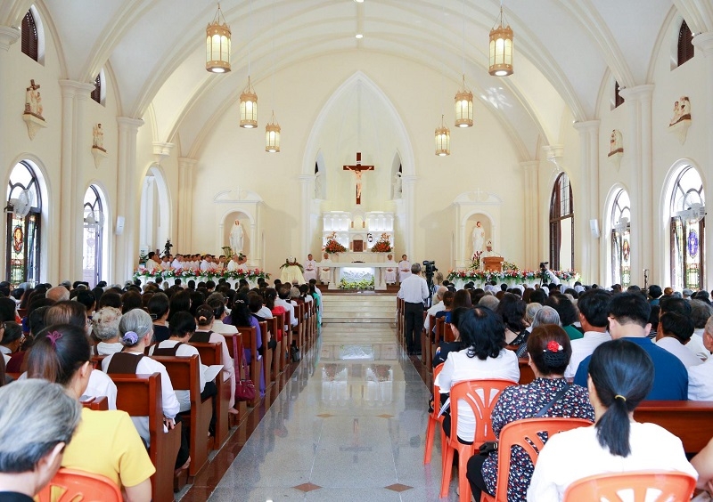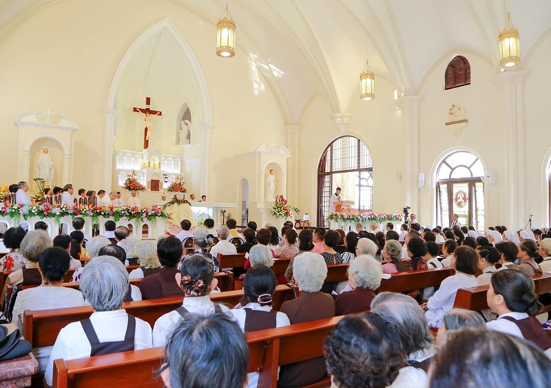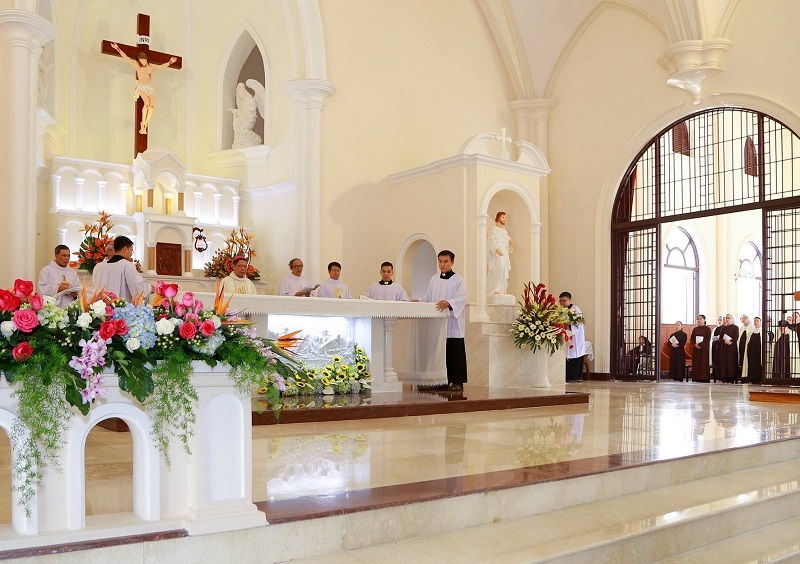 Chủ tế Thánh lễ là ĐGM Giuse Đỗ Mạnh Hùng - Giám quản TGP Sài Gòn. Đồng tế trong Thánh lễ có ĐGM Emmanuel Nguyễn Hồng Sơn và khoảng 50 linh mục. Tham dự Thánh lễ có đông đảo tu sĩ và tín hữu gần xa đến hiệp lòng cầu nguyện.