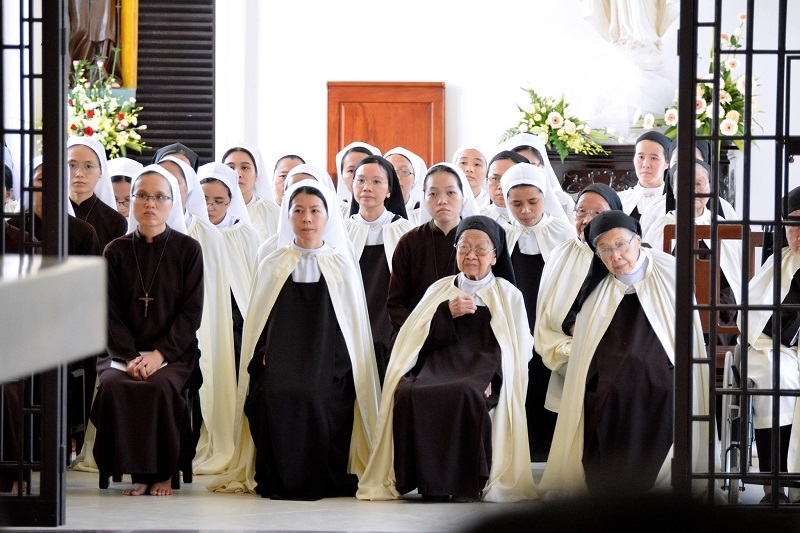 - Trải qua 158 năm (1861 - 2019) hiện diện trên đất Sài Gòn, các nữ tu đan viện Cát Minh Sài Gòn vẫn liên lỉ hằng ngày sống đời chiêm niệm, cầu nguyện cho cả Giáo Hội và giáo phận.Thánh lễ tạ ơn khép lại. Trước khi chia tay ra về, cộng đoàn nhận phép lành trọng thể từ tay Đức Giám quản và cùng hát Te Deum bằng tiếng La tinh để ngợi khen Thiên Chúa.