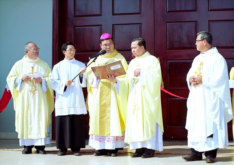 Cuối thánh lễ, vị đại diện giáo xứ xin gửi lời tri ân đến Đức cha, quý cha quản nhiệm, quý ân thân nhân cùng bà con giáo dân đã góp công, góp của, chung sức để giáo xứ có ngôi thánh đường khang trang như ngày hôm nay.