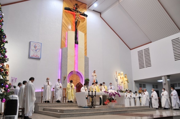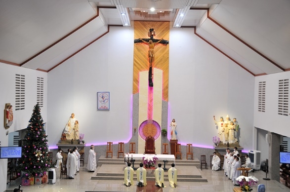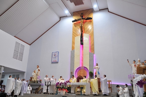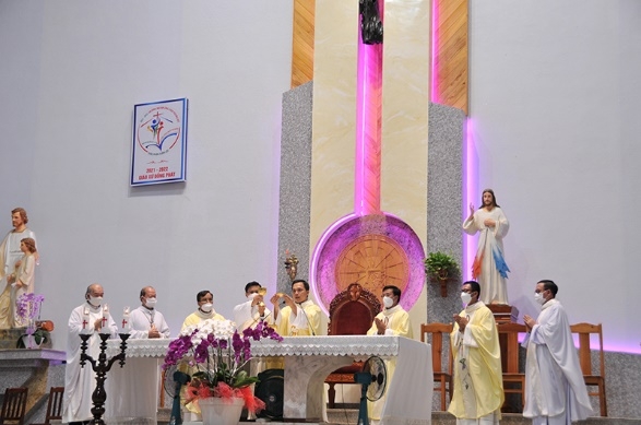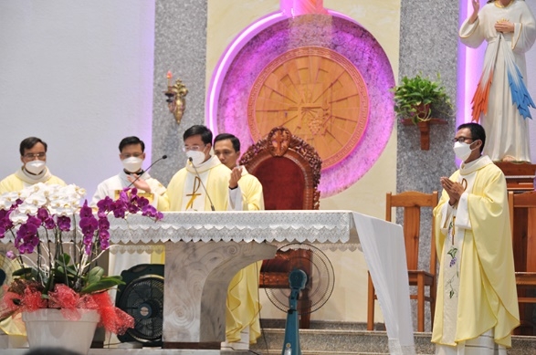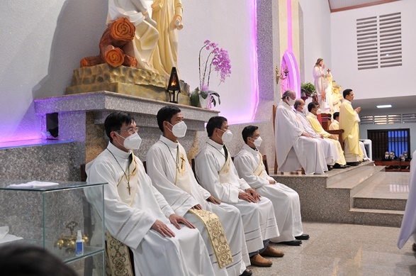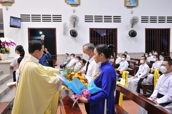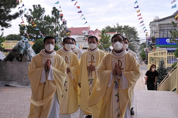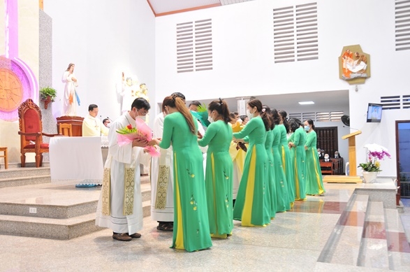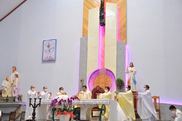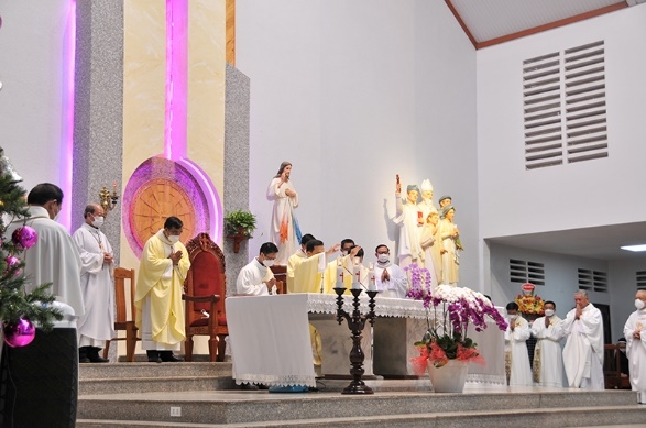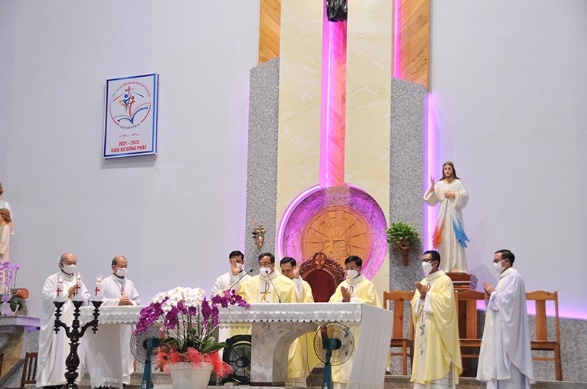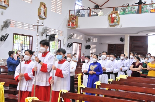Đúng 16h30, đoàn rước tiến vào thánh đường Giáo xứ trong niềm hân hoan vui mừng của toàn thể cộng đoàn dân Chúa. Hiệp dâng thánh lễ với Tân linh mục hôm nay có: Cha Phaolô - Chánh xứ Giáo xứ Đồng Phát, Cha Emmanuel Trần Quang Khương – Bề Trên Sứ Vụ, quý Cha Nghĩa Phụ của Tân Linh mục, quý Cha Dòng Hiến Sĩ Đức Mẹ Vô Nhiễm và quý linh mục trong Giáo Phận Xuân Lộc, 09 tân chức Phó tế, anh em Hiến Sĩ, quý tu sĩ nam nữ, và cộng đoàn dân Chúa.