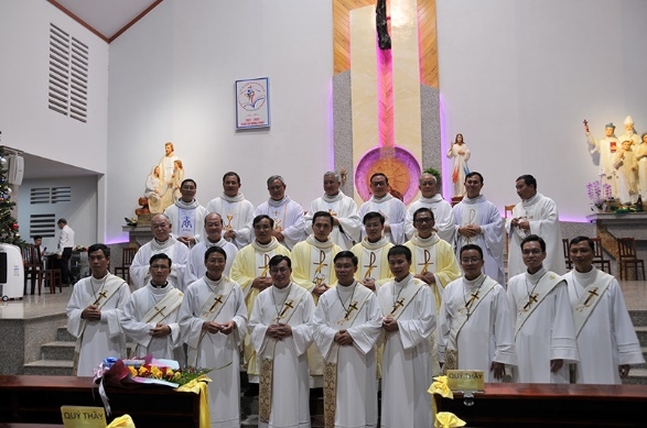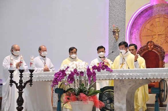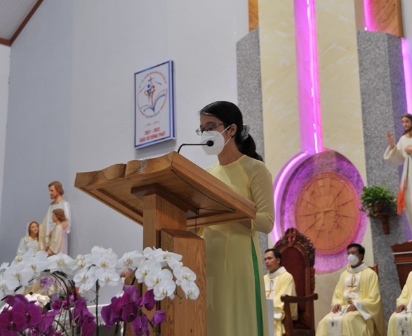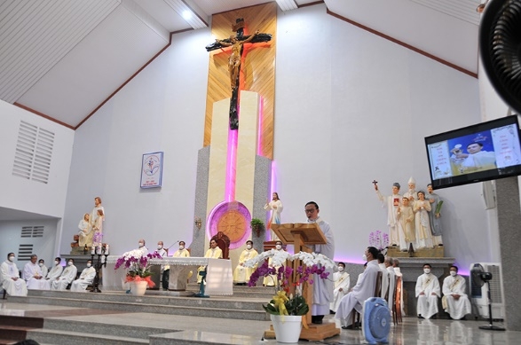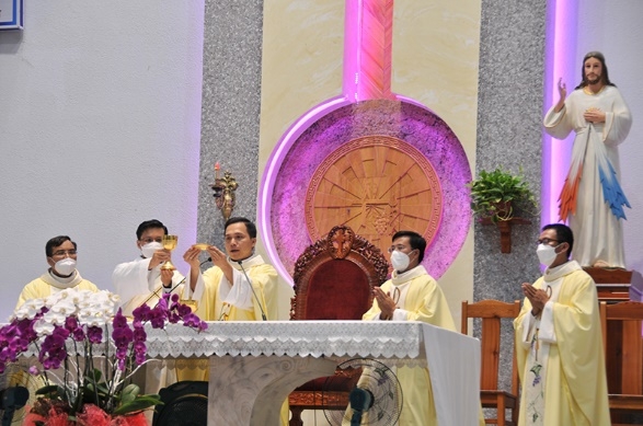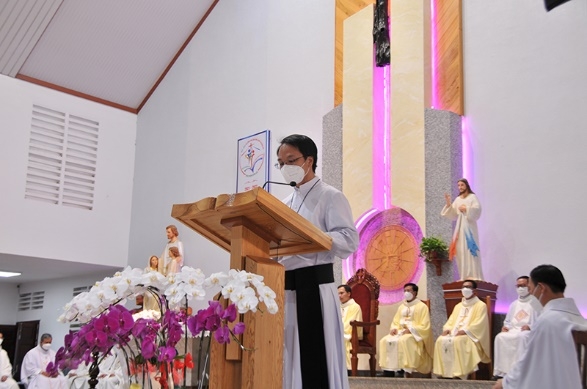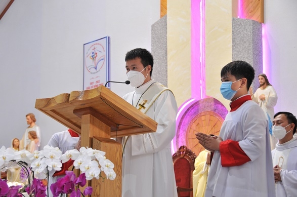 Trong bài giảng lễ, Cha Giuse Hà Đăng Định, chánh xứ Giáo xứ Thánh Tâm - Giáo phận Xuân Lộc, đã chia sẻ với cộng đoàn về tình yêu với Đức Kitô trong Thiên chức linh mục: khởi đi từ châm ngôn đời linh mục của cha mới Phaolô: “Tình yêu Đức Kitô thúc bách tôi” (2 Cr 5,14), Cha Giuse đã làm sáng tỏ sự huyền nhiệm trong ơn gọi của ngôn sứ Isaia: ngôn sứ Isaia thấy mình đang ở trong đền thờ uy nghi rực rỡ, có Đức Chúa ngự ở đó. Khi đứng trước nhan Đức Chúa, ông thấy mình quá tội lỗi, quá bất xứng, đến nỗi ông phải thốt lên: ‘Khốn thân tôi, tôi chết mất vì tôi là một người môi miệng ô uế, ô uế, ô uế’ (Is 6,5). Nhưng khi một trong các Xêraphim lấy than hồng đặt trên bàn thờ chạm vào miệng ông, thì ông đã được thanh tẩy: “Đây cái này đã chạm đến môi ngươi, ngươi đã được tha tội” (Is 6,7). Để rồi khi nghe Thiên Chúa muốn tìm một vị ngôn sứ: “Ta sẽ sai ai đây, ai sẽ đi cho chúng ta?” (Is 6,8a) thì ông đã mạnh dạn lên tiếng: “Dạ, con đây, xin sai con đi!” (Is 6, 8b). Trong bài đọc II, cha Giuse khẳng định: “Tình yêu không có hy sinh là tình yêu giả dối, sự hy sinh không có tình yêu là sự hy sinh dư thừa”. Hơn thế nữa, với tình yêu của thánh Phêrô với Chúa Kitô, ngài nhấn mạnh ý nghĩa câu trả lời của thánh Phêrô: “Thưa Thầy, Thầy biết con yêu mến Thầy”. Cha Giuse đã giải thích tận căn ý nghĩa câu trả lời của thánh Phêrô: “Thưa Thầy, ngay lúc này, ngay ở đây, con yêu mến Thầy”. Cha Giuse đã phải thốt lên vì tình yêu và sự xác quyết mãnh liệt của thánh Phêrô. Quả vậy, tình yêu của chúng ta thì luôn “mỏng giòn, dễ tan biến”. Cha Giuse không quên nhắn nhủ Tân linh mục Phaolô 03 điều quan trọng: “Thứ nhất, tình yêu của Chúa là tình yêu vô vị lợi, Ngài yêu ta ngay khi ta chẳng xứng đáng với tình yêu đó. Thứ hai, phải luôn nhớ rằng: ‘chúng ta là những con người yếu đuối và cần ơn trợ giúp của Chúa’. Cuối cùng, trong đời sống linh mục hãy hy sinh trong tình yêu cao cả nhất”. Linh mục là trung gian kết nối cái hữu hình với vô hình, là cánh tay nối dài của Thiên Chúa giữa dòng đời để đưa con người tới gần Thiên Chúa, là người có tầm ảnh hưởng nhất định đến những người mà Thiên Chúa đã trao phó… Chính vì thế, chỉ có ơn Chúa và lời cầu nguyện của tất cả mọi người mới có thể giúp linh mục chu toàn sứ vụ thánh thiêng Thiên Chúa đã trao phó. Nói khác đi, linh mục chỉ có một vai trò và chức năng quan trọng là rao giảng Tin Mừng cứu độ của Chúa Kitô và làm chứng cho Chúa trong mọi hoàn cảnh để phục vụ hữu hiệu cho các linh hồn đang cần đến Chúa và mong lãnh nhận ơn cứu độ của Người.